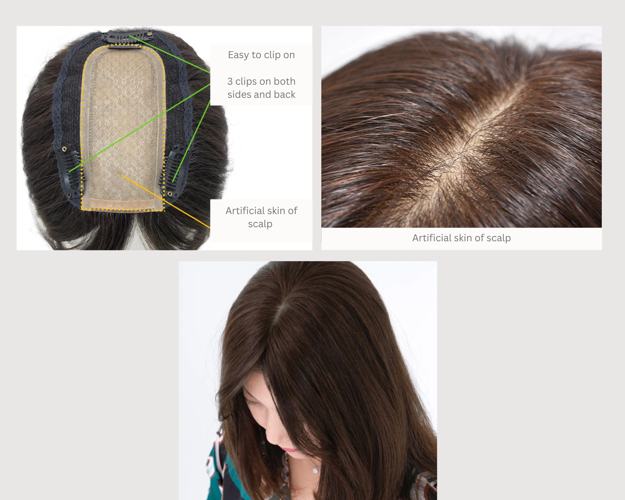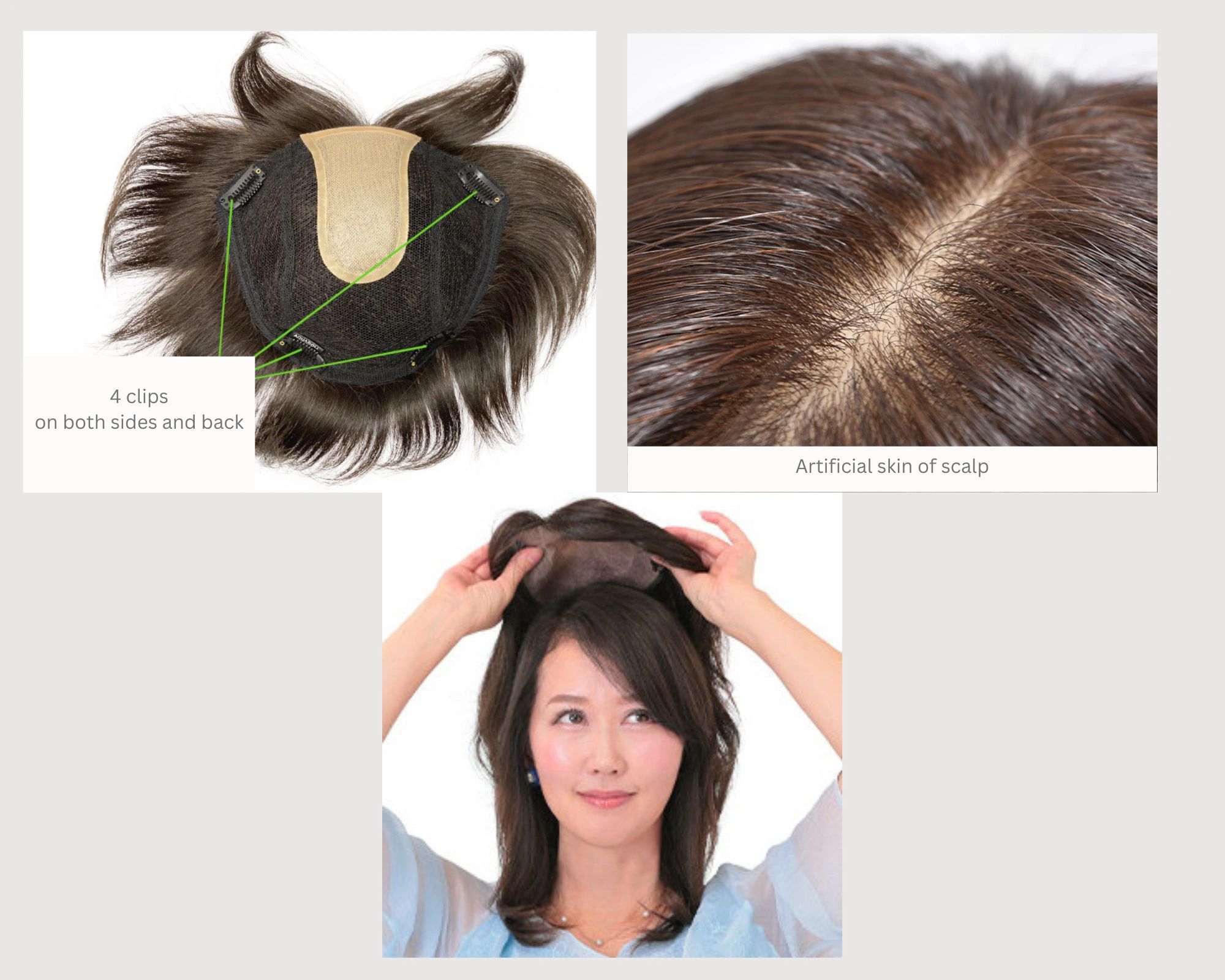 Three clips are attached to the smaller-sized base net, making it ideal for individuals seeking a discreet volume enhancement.