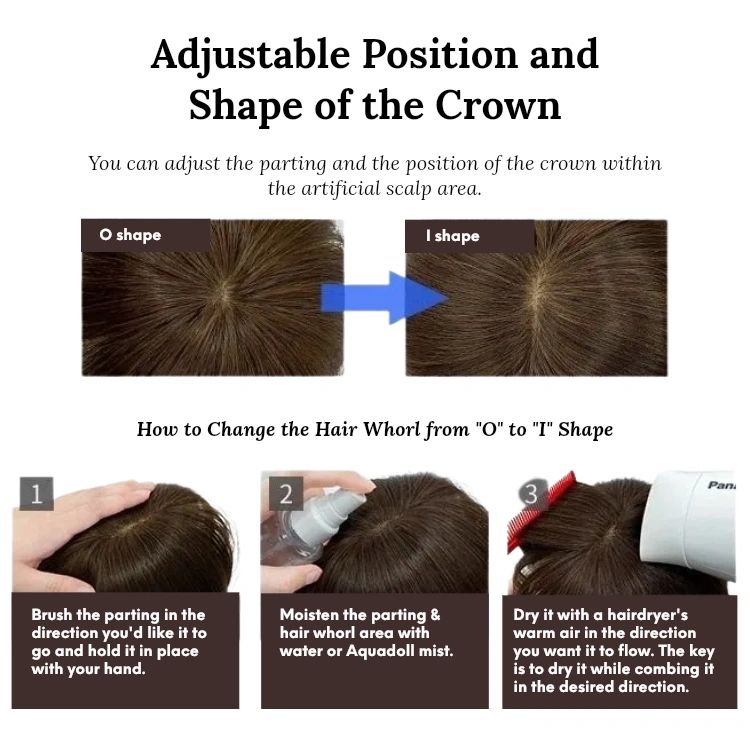 The hair whorl is structured with a pull-out, dual-layer design that offers the most natural appearance. Hair implanted in the lower base is drawn through the upper base, effectively concealing knots and giving the illusion of hair growing directly from the scalp.